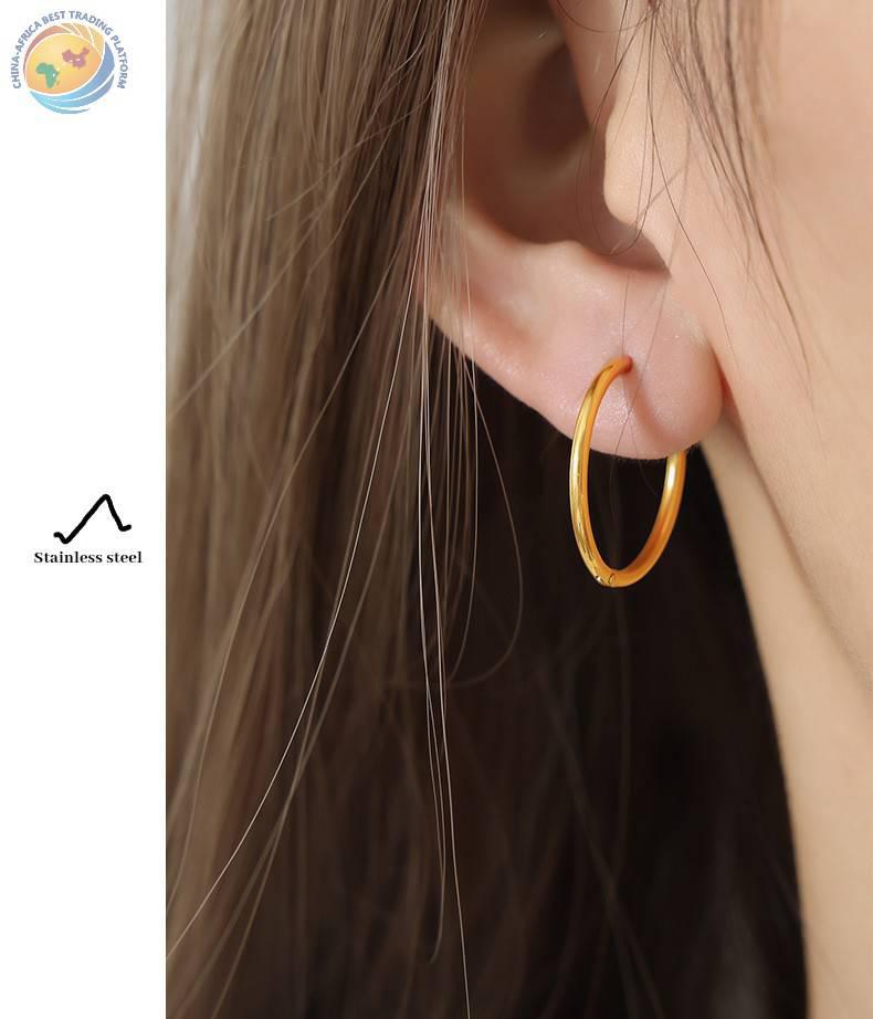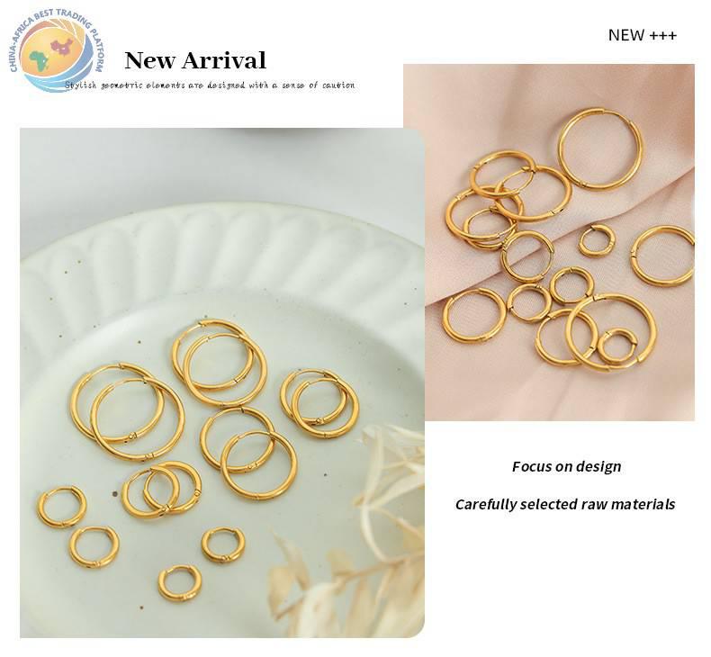 欧美跨境新款高级感小众设计大小圆圈轻奢气质钛钢镀金耳环饰品女
