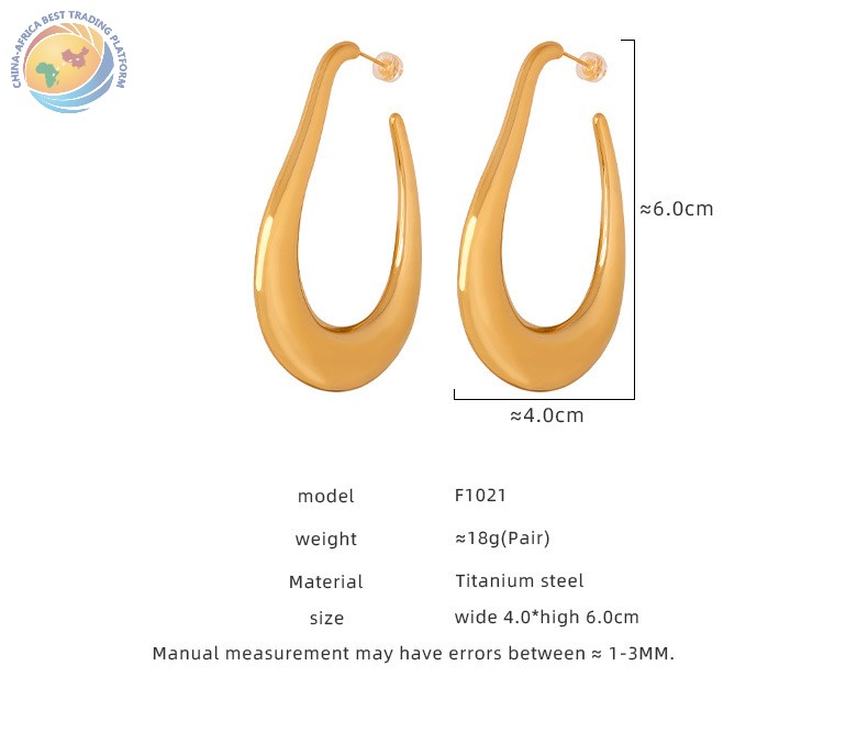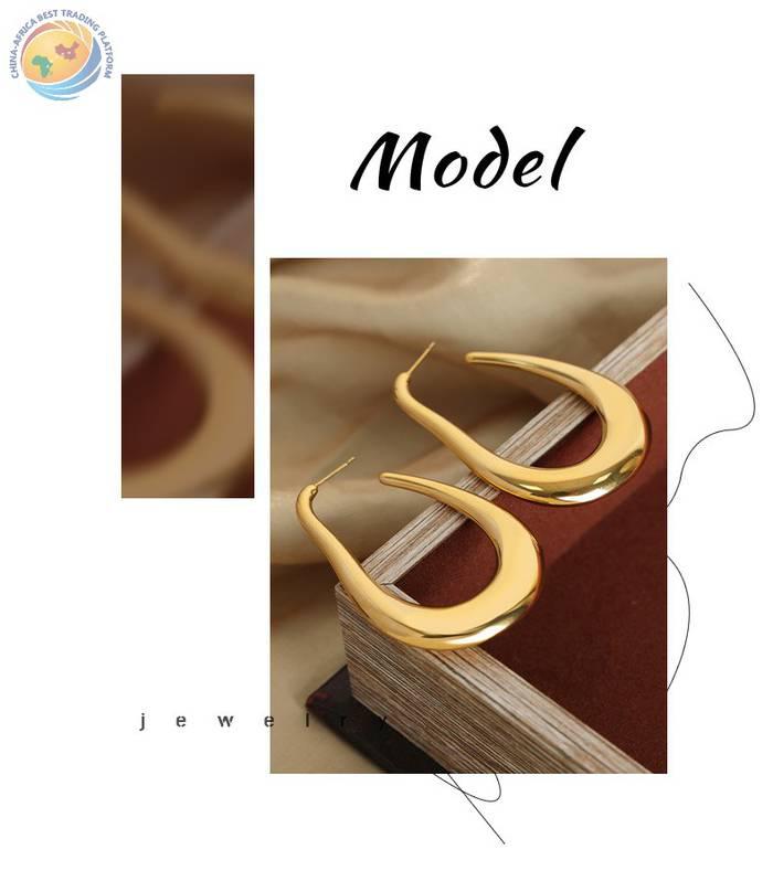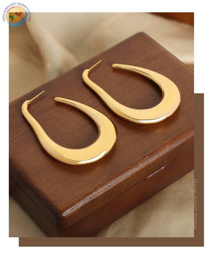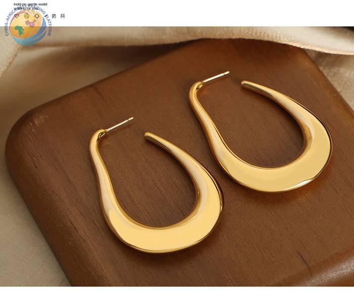 欧美新款跨境时尚百搭夸张设计个性钛钢镀金质感几何形耳环饰品女