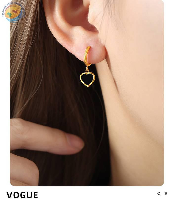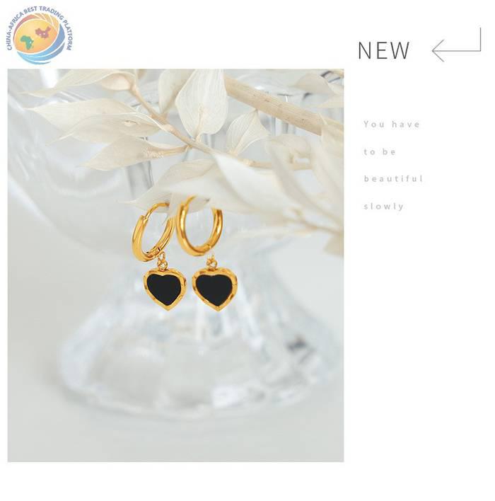 欧美新款高级感轻奢个性黑色滴釉桃心钛钢镀金耳环小众设计饰品女