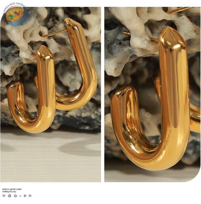 Cross-border new niche design simple personality titanium steel gold-plated J-shaped design sense earrings European and American style jewelry wholesale