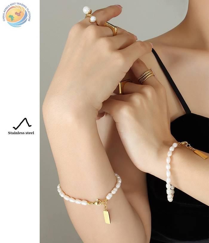 French English letter square brand pendant in ancient style fresh water pearl bracelet