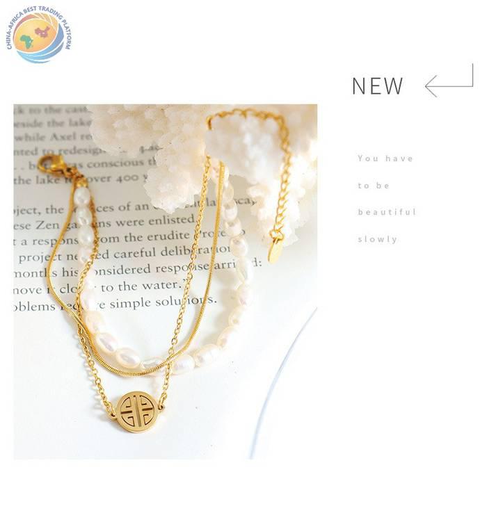Three layers of titanium steel hand jewelry natural freshwater pearl Fu brand bracelet