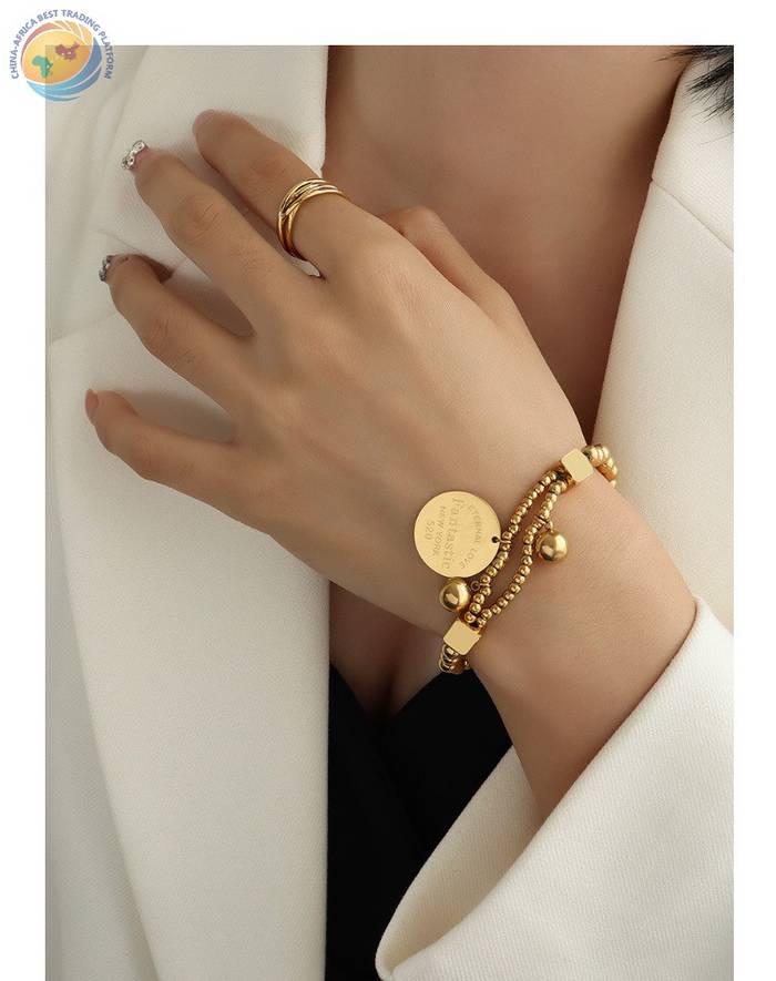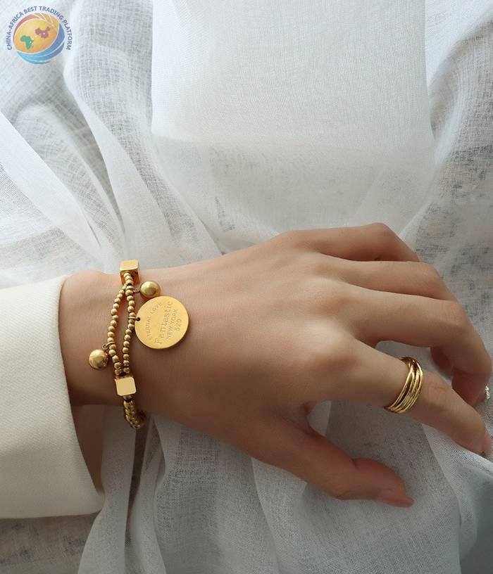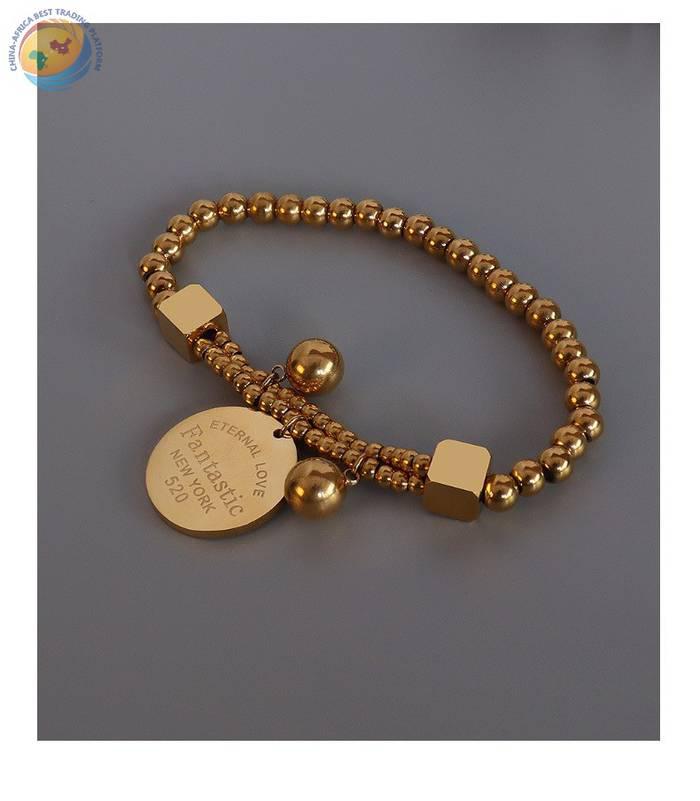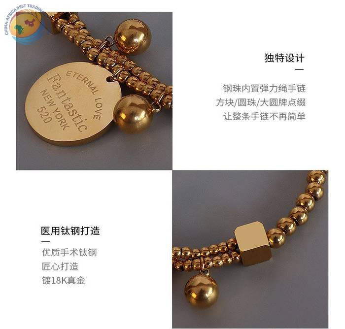Korean retro titanium steel bracelet love round brand elastic line double layer wear bracelet