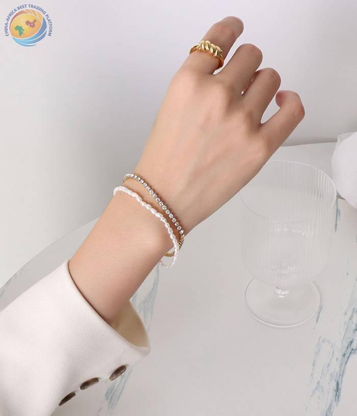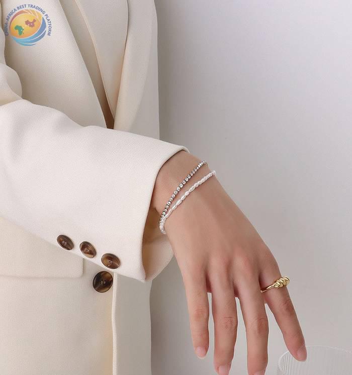 日航ins简约小清新双层钛钢手链淡水珍珠锆石手链女