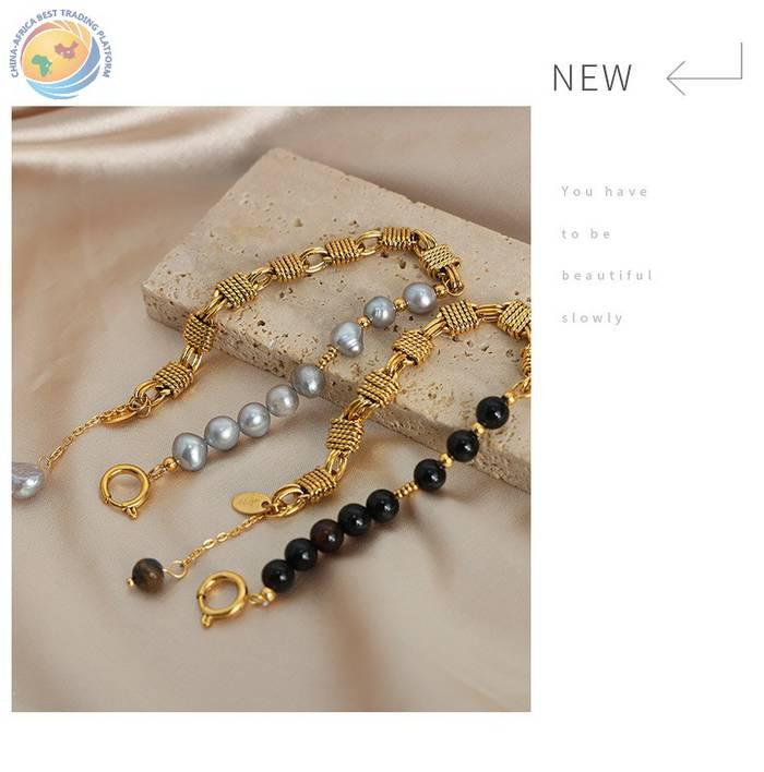 High-end sense niche men\'s brass freshwater pearl handmade beaded bracelet female