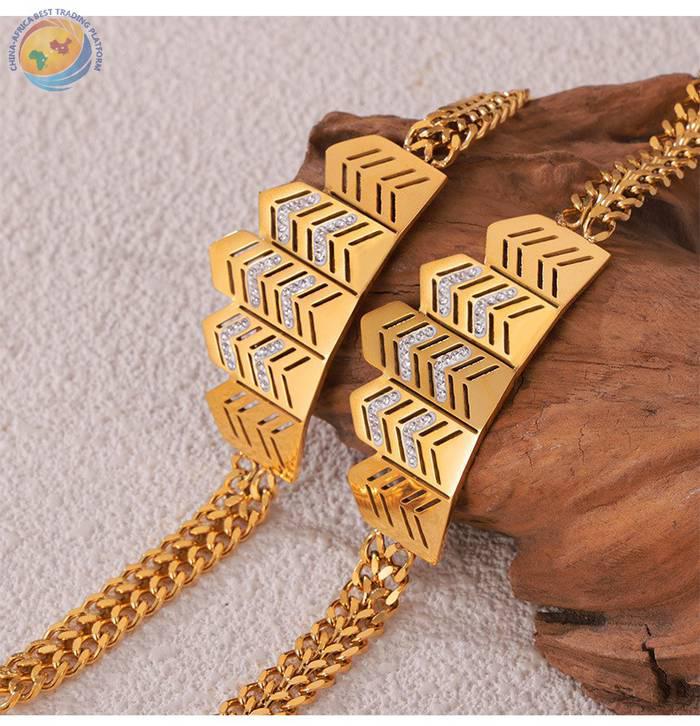 Hollow flag with diamond design sense of personality titanium steel jewelry set