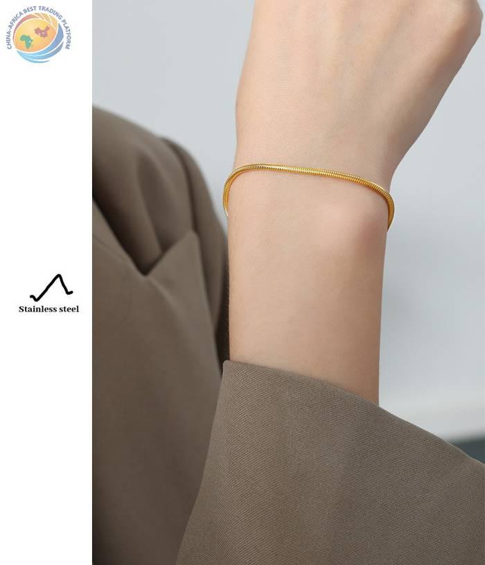 The new high sense fashion all match niche design personality titanium steel plated 18K gold bracelet