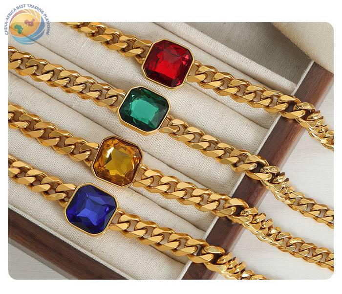 中古风小众轻奢风锁骨链彩色锆石简约钛钢手链