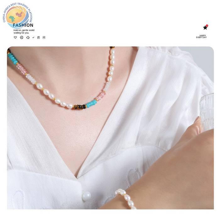 National style design natural stone handmade beaded pearl light luxury temperament necklace bracelet