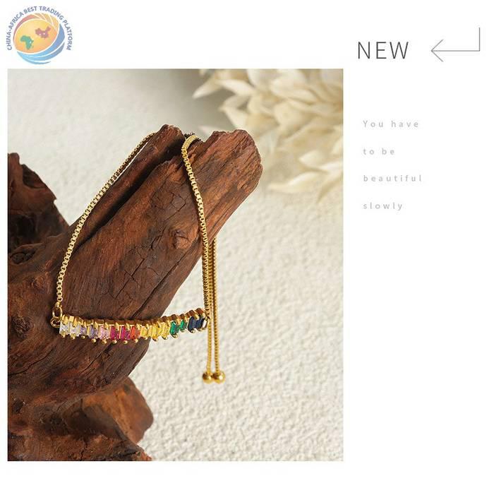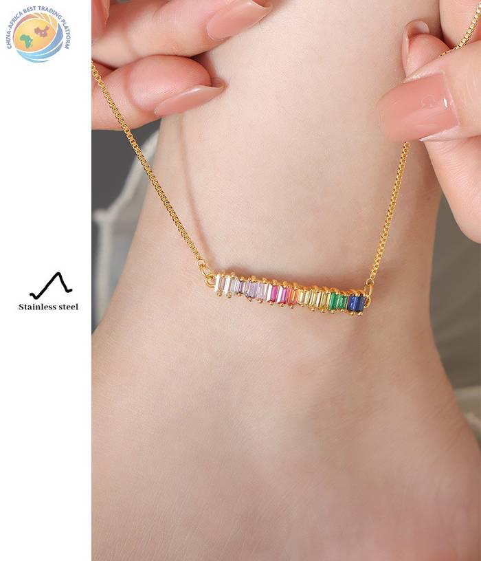 几何设计镶嵌多色彩锆石蛇骨链钛钢镀金抽拉扣脚链