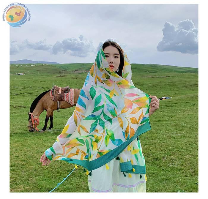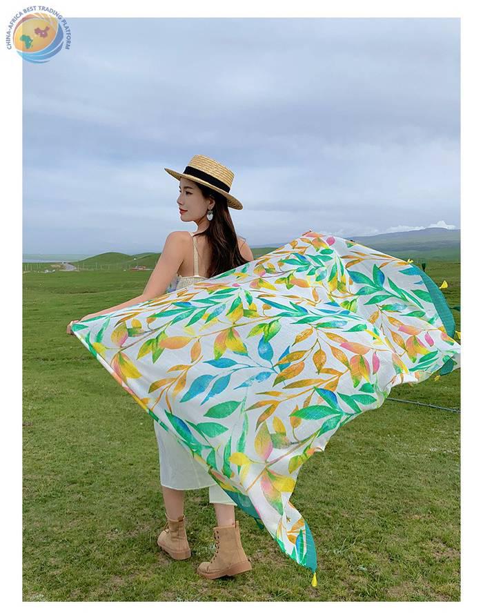 渐变彩色树叶防晒外搭披肩女薄款旅游沙漠丝巾