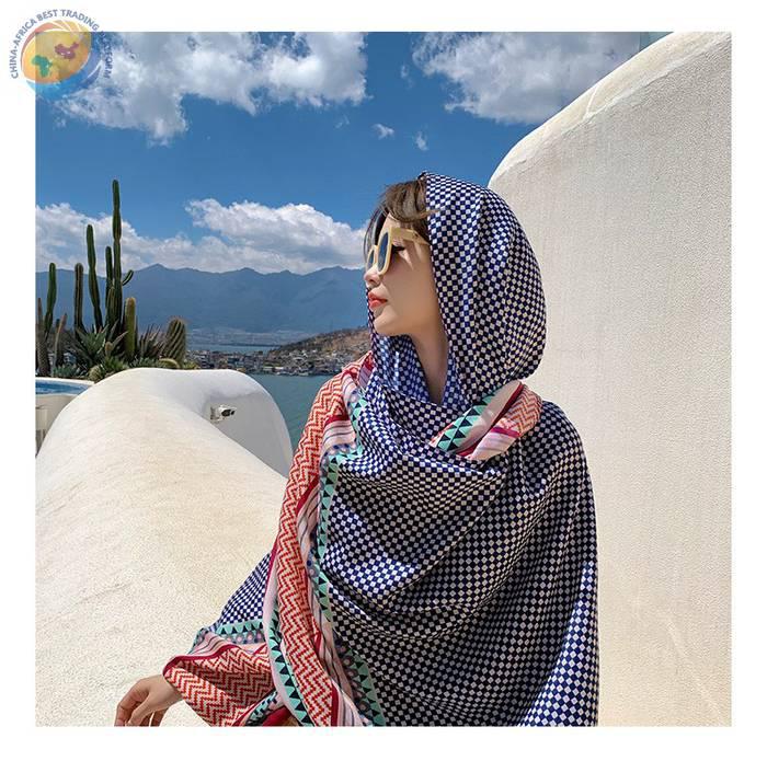 复古民族风荷花春夏季仿棉麻手感海边丝巾女