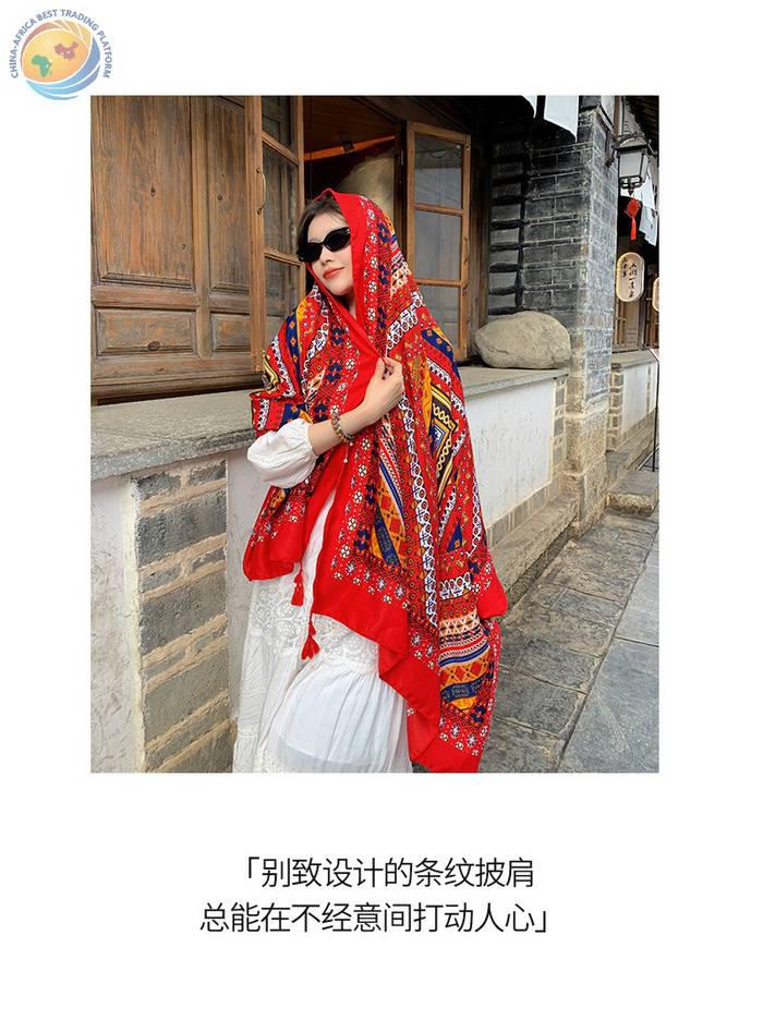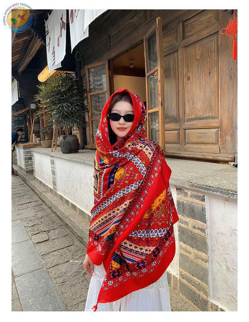 夏季棉麻手感围巾防晒空调大披肩民族风围巾