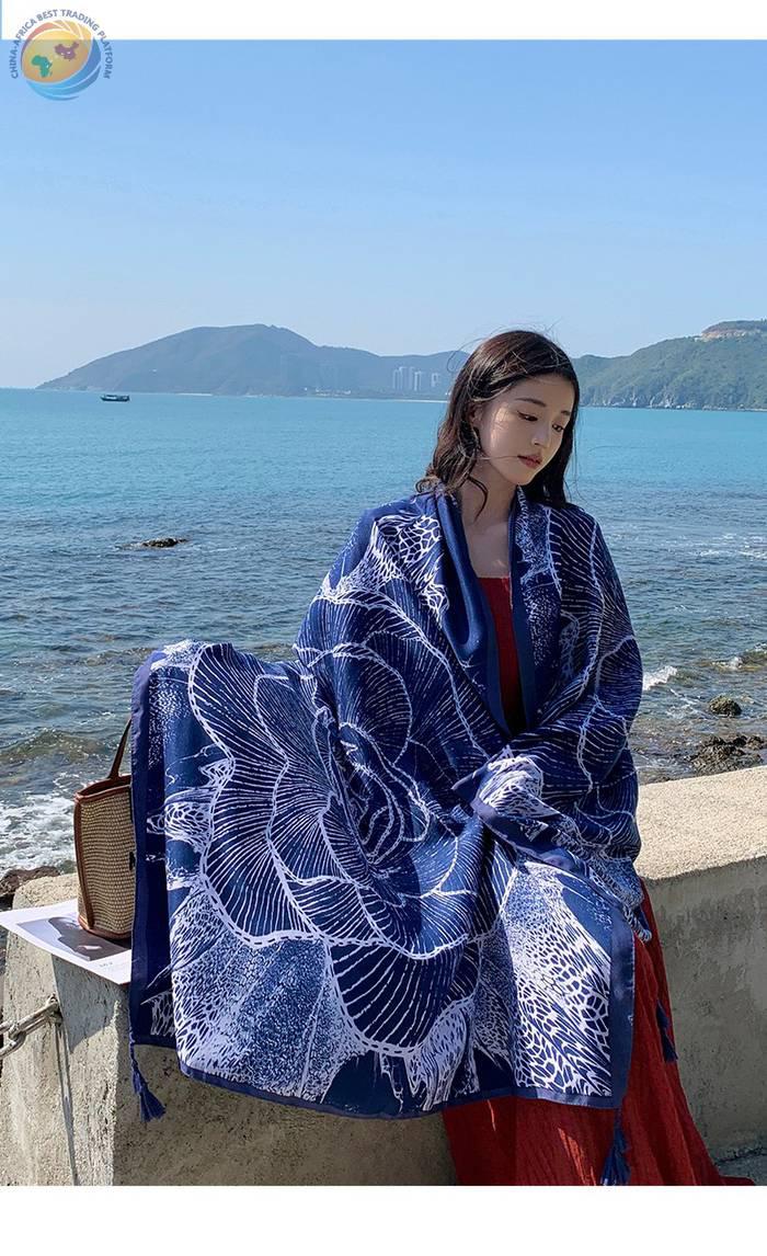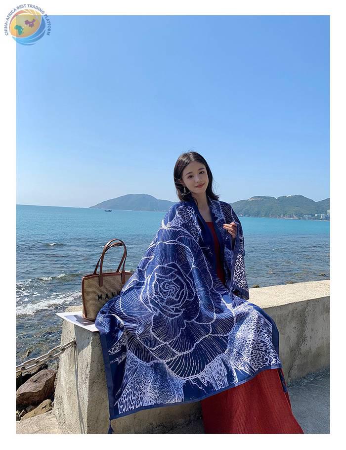 韩版黑色玫瑰轻薄款仿棉麻手感丝巾女外搭披肩