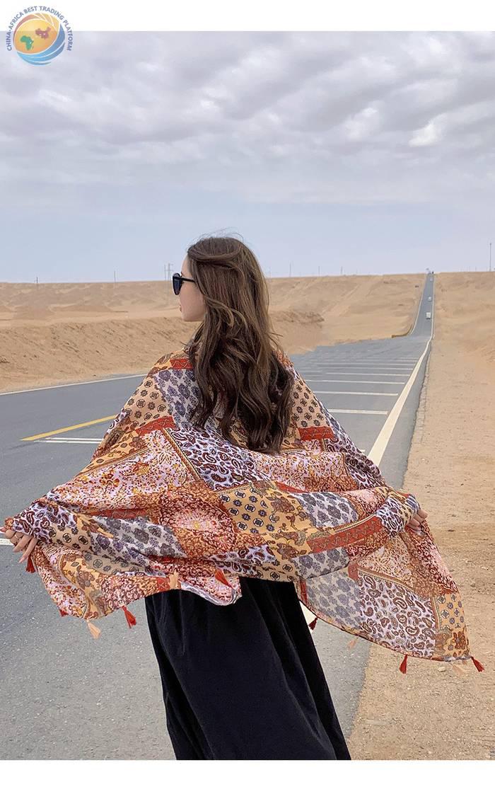 红色拼接腰果花防晒披肩女夏薄款外出旅游沙漠丝巾