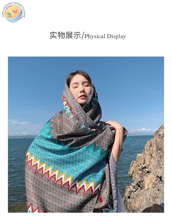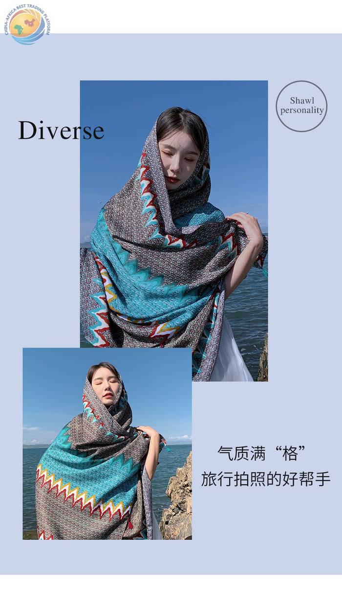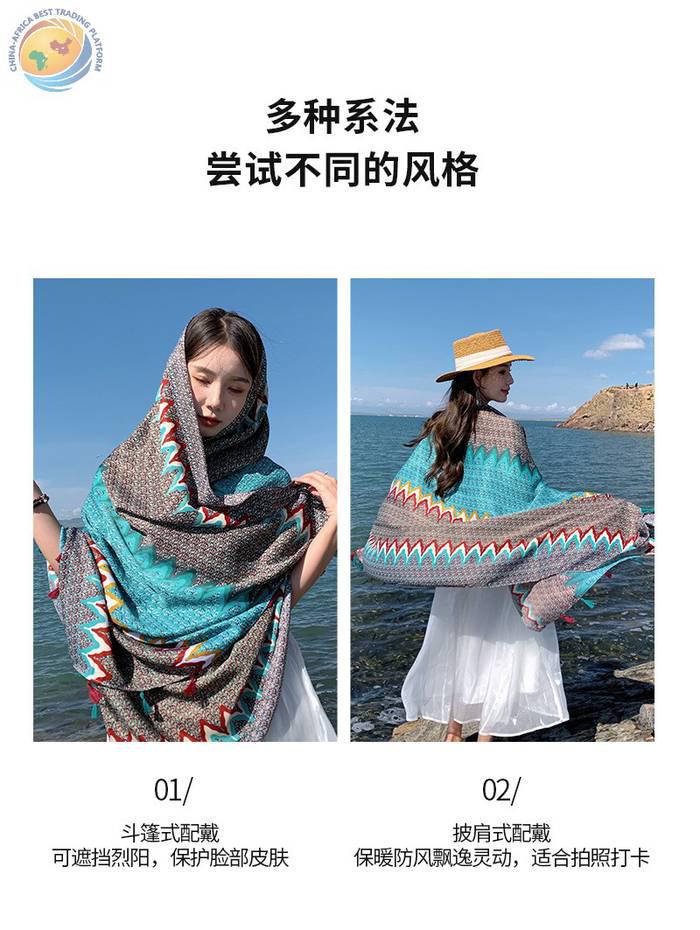 绿色波浪防晒披肩女薄款外出民族风纱巾海边