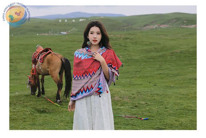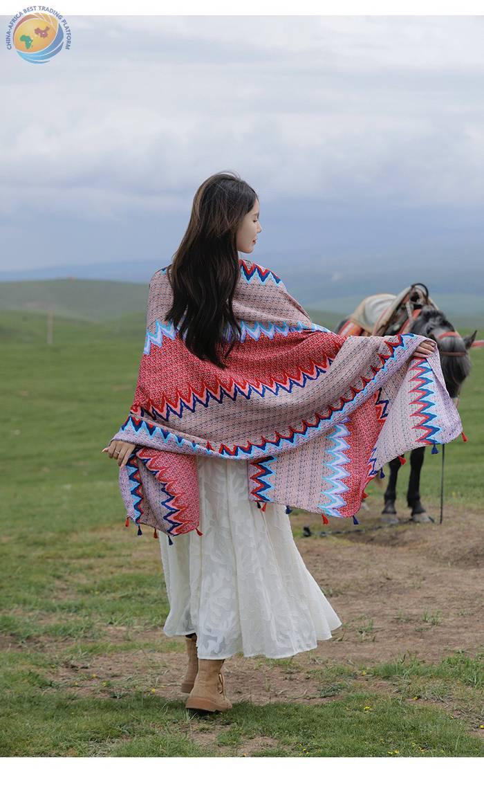 Red wave sun protection shawl women\'s thin travel scarf ethnic style gauze scarf