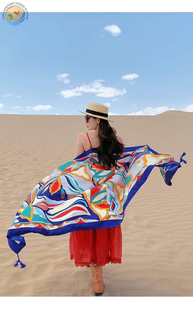 彩色祥云防晒披肩女薄款外出青海云南旅游围巾