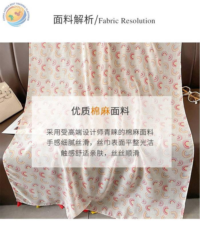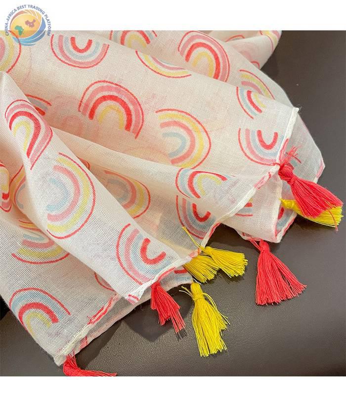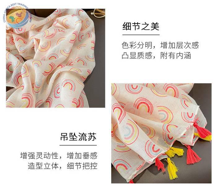 Rainbow thin cotton linen feel long scarf women\'s scarf fringe pendant