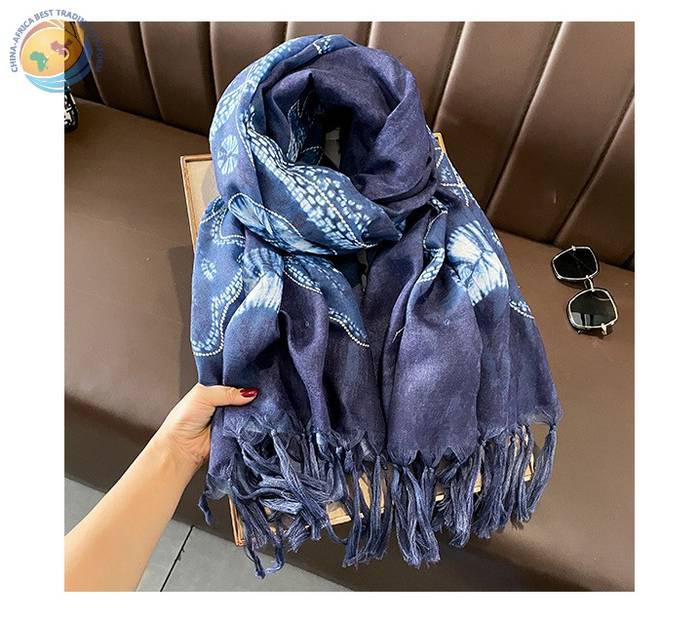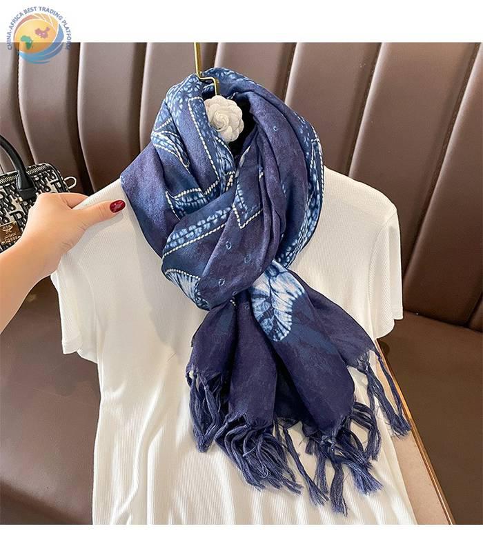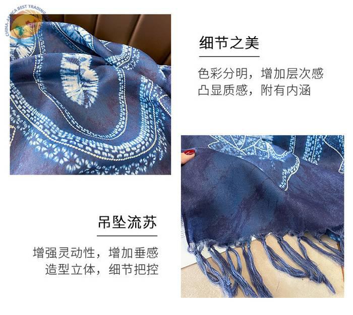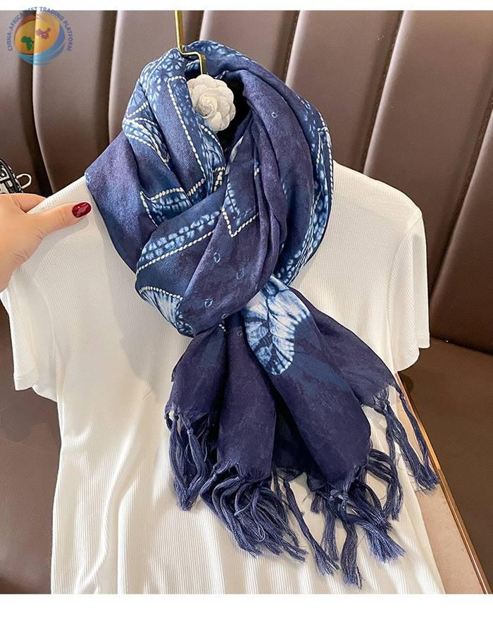 Blue batik scarf scarf shawl dual purpose warm tassel