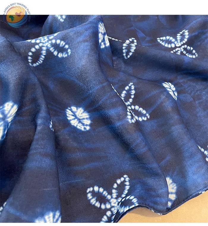 春秋蓝色蜡染棉麻手感180大长巾女围巾