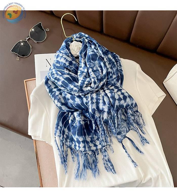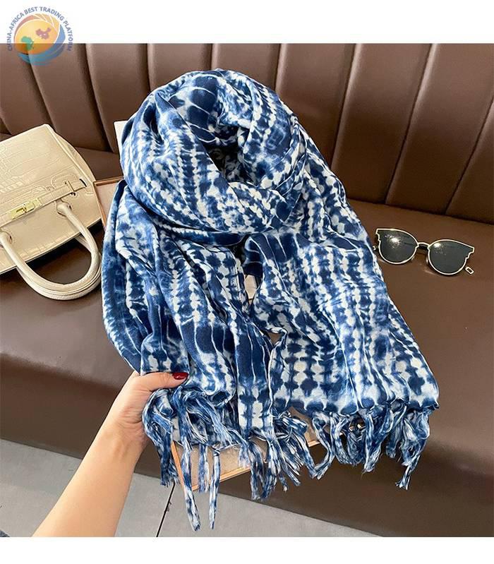 新款春秋蓝色系围巾女保暖棉麻丝巾夏季披肩