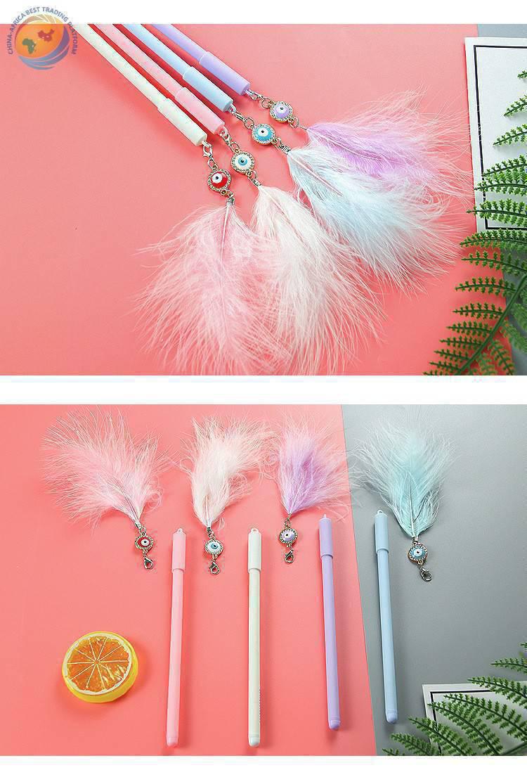 高颜值孔雀羽毛挂件笔ins少女心吊坠中性笔