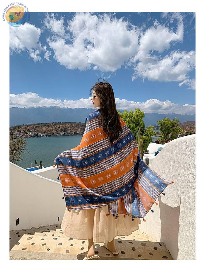 田园风旅行春夏季仿棉麻手感丝巾女户外保暖外搭