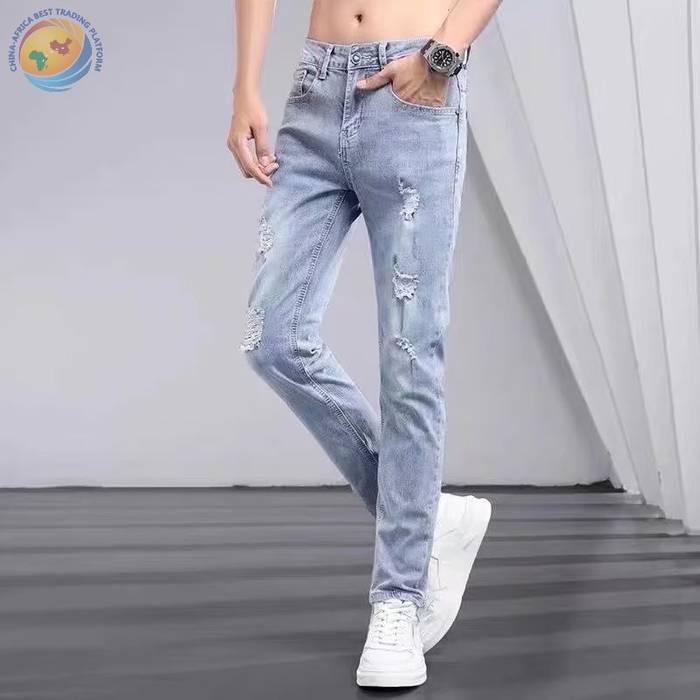 Men's Jeans破洞牛仔裤男士韩版修身潮牌浅色春秋款男款男裤子