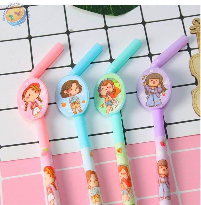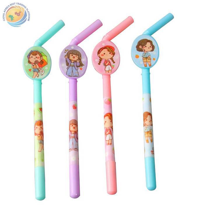 可爱吸管造型中性笔少女心高颜值花膜挂牌签字笔