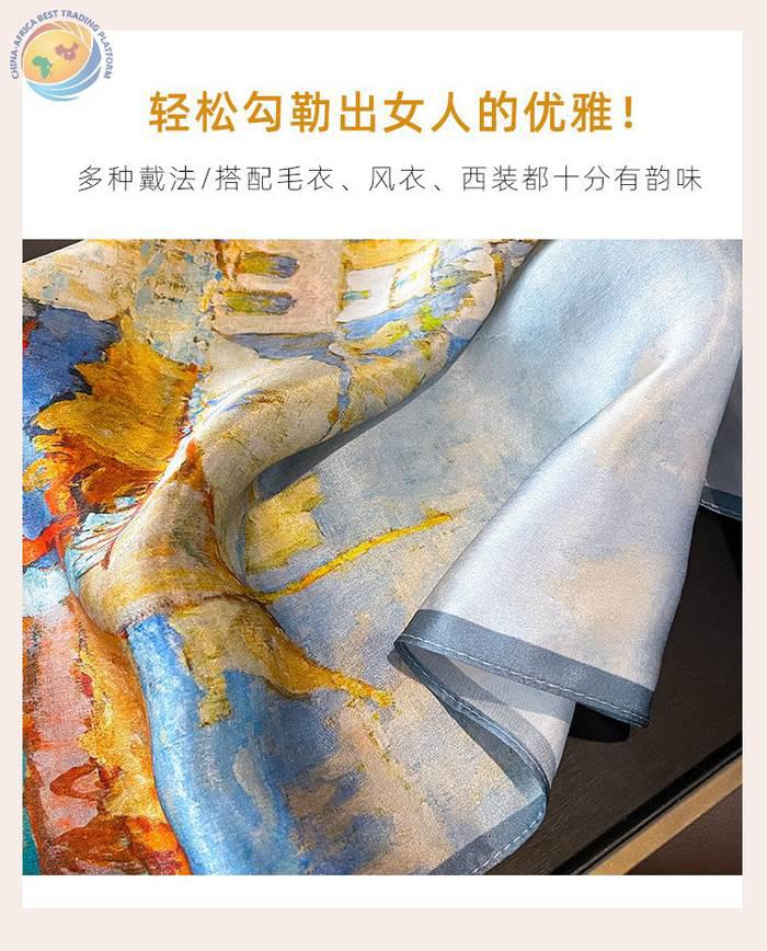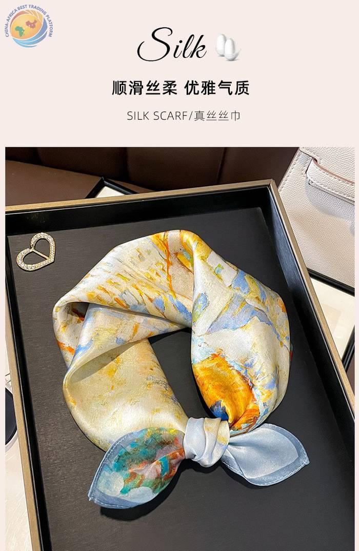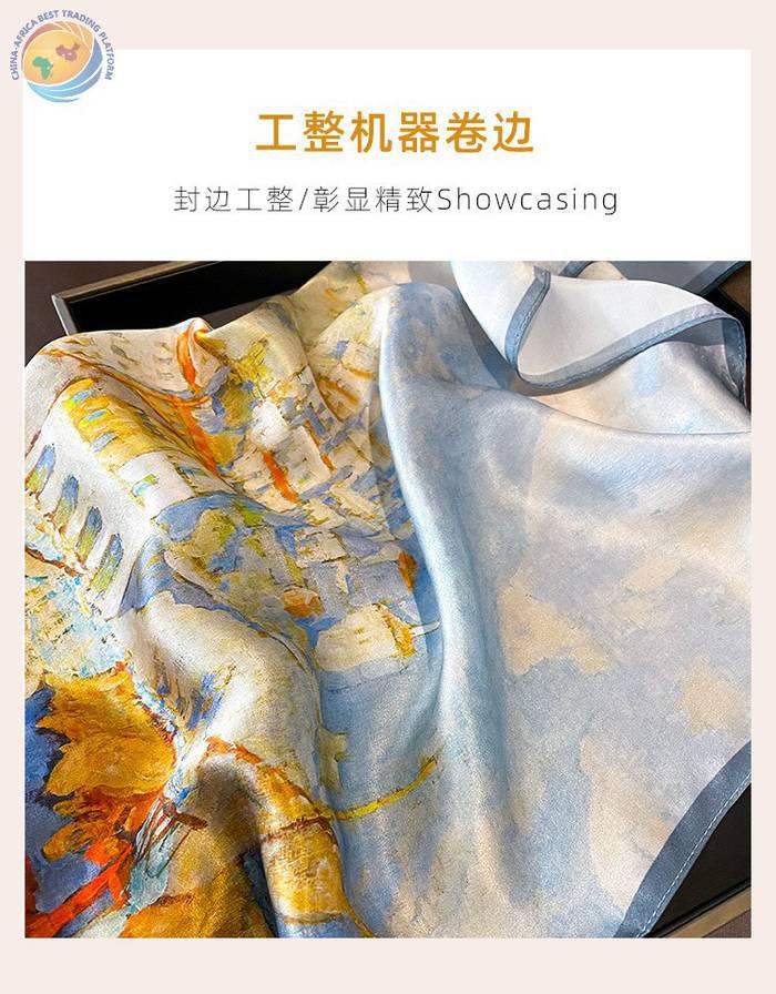 Vintage oil painting silk 100% mulberry silk scarf 53cm square scarf