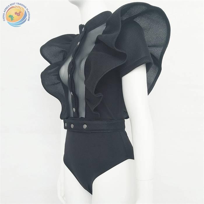 现货春季新款网纱荷叶边连体衣