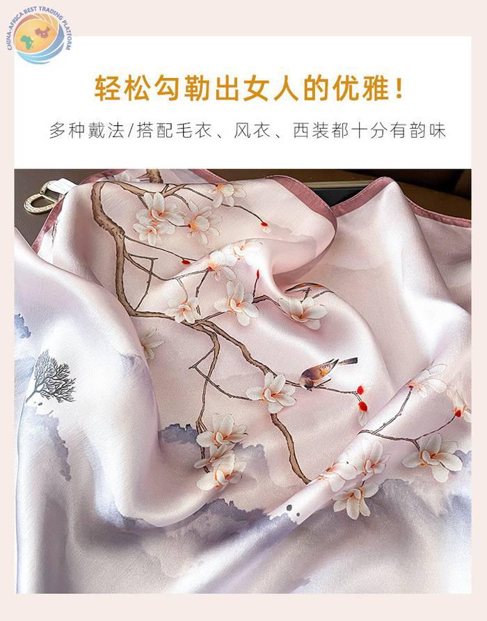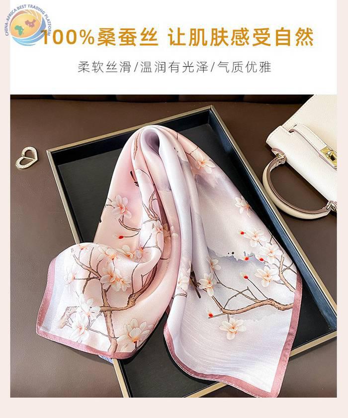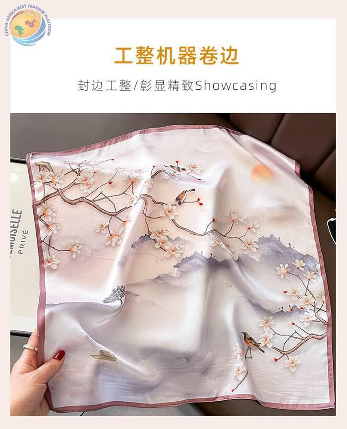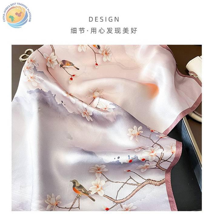 100% mulberry silk small square scarf send mother Chinese style flower silk scarf