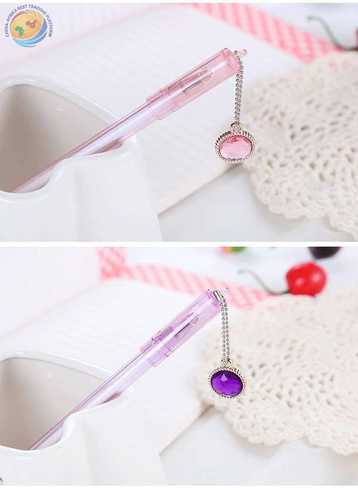 圆镜宝石吊坠中性笔可爱文具办公水性签字笔