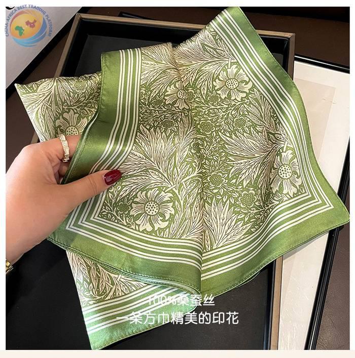 Silk scarf women 2024 summer new flower silk small square scarf mulberry silk temperament