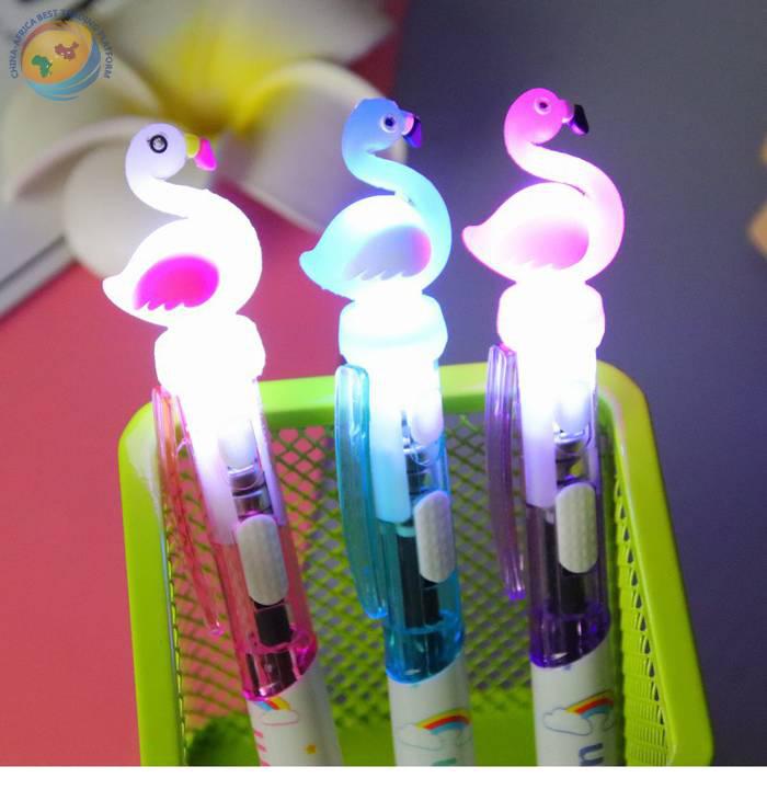 可爱文具带灯按动圆珠笔卡通火烈鸟灯笔创意