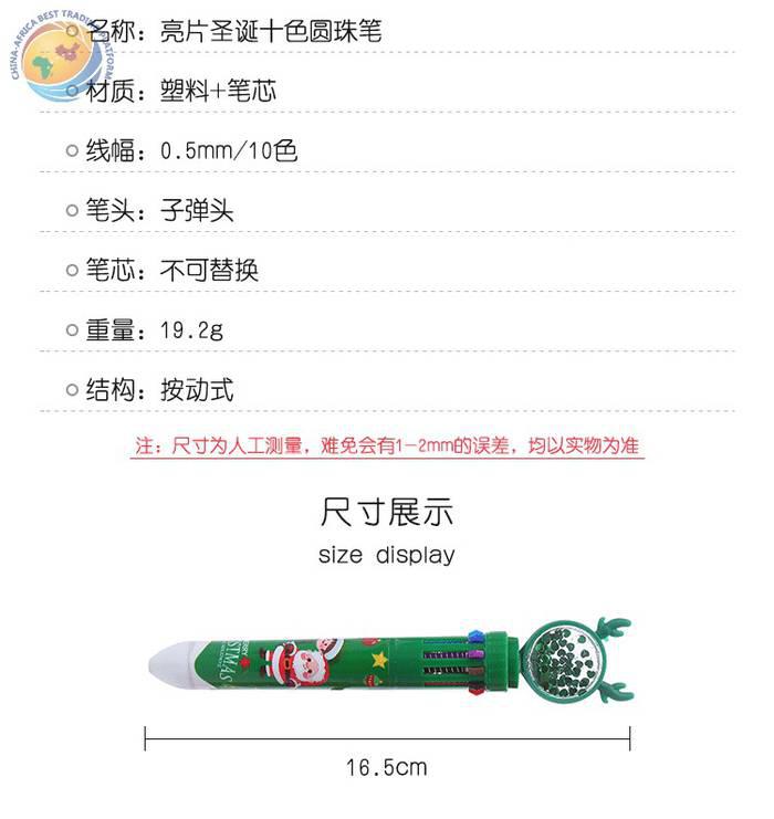 圣诞节奖品礼物鹿角按动圆珠笔彩色手账笔