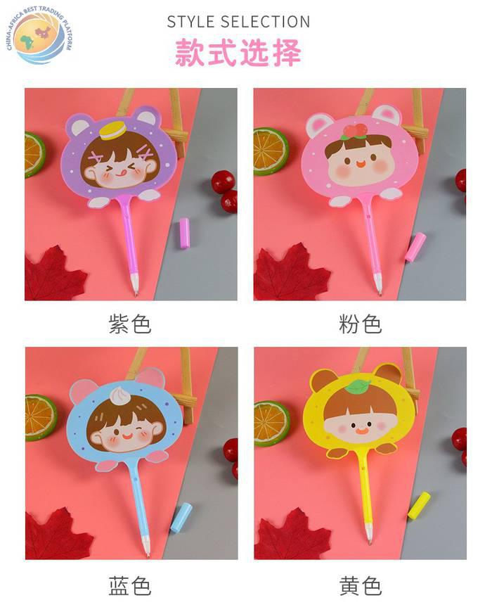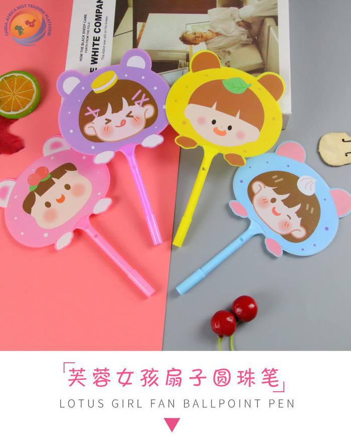 Little fresh Hibiscus girl fan ballpoint pen children\'s prize gift advertising pen