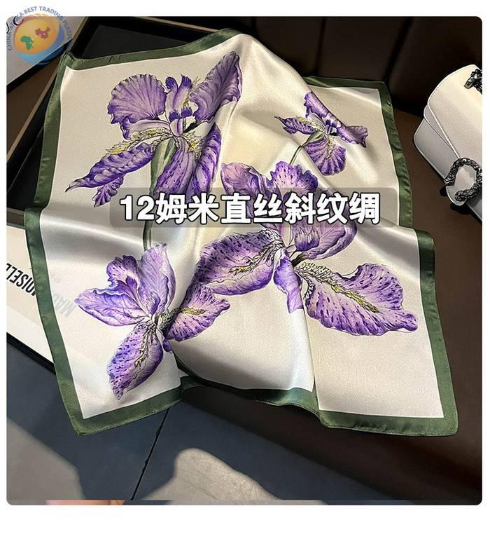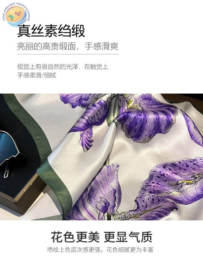 Mulberry silk scarf Korean version purple flowers decorated scarf headband