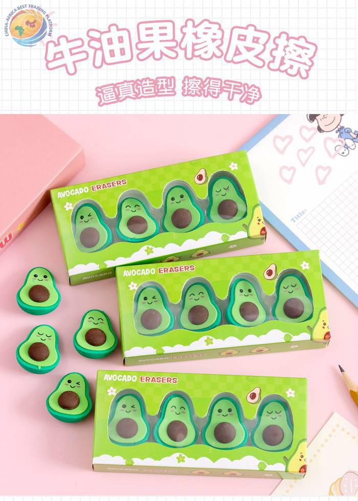 Cute emoji Avocado box eraser set Student Christmas gift prizes