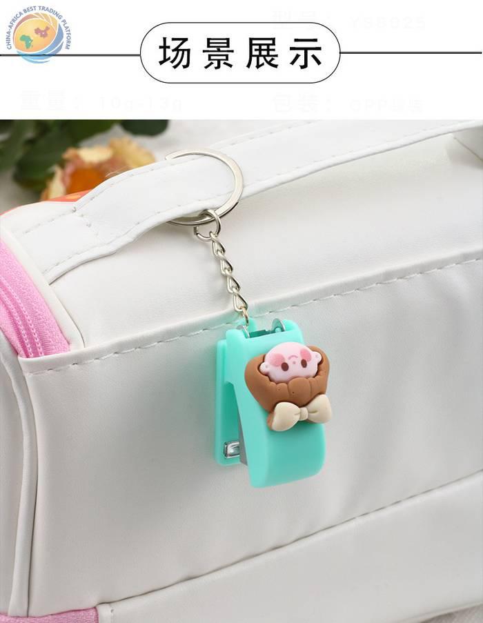 可爱卡通迷你订书机钥匙扣马卡龙色