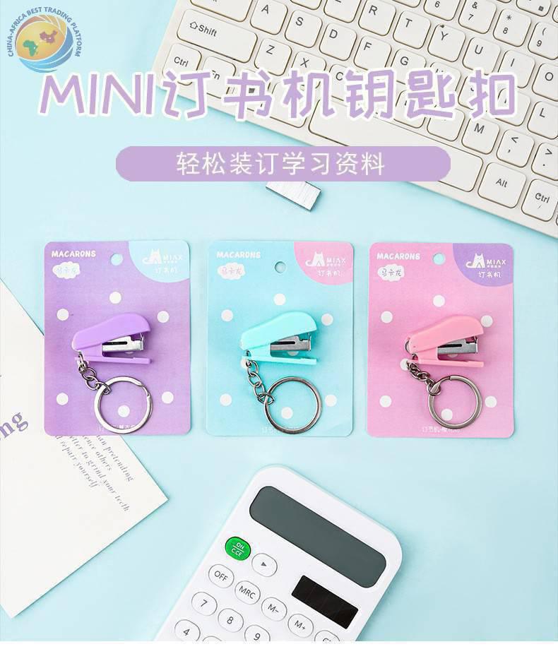 可爱卡装迷你订书机钥匙扣学生文具