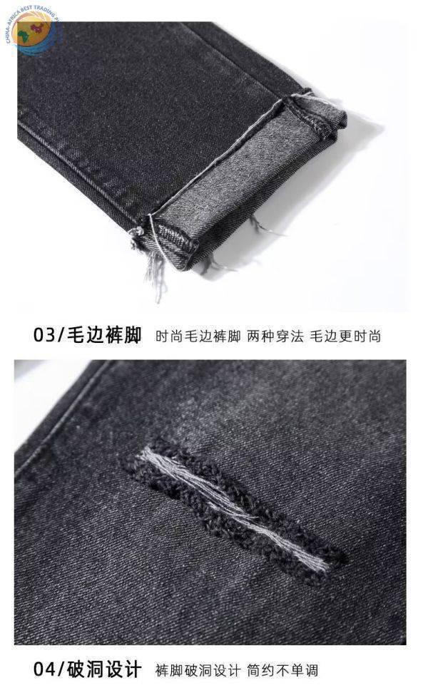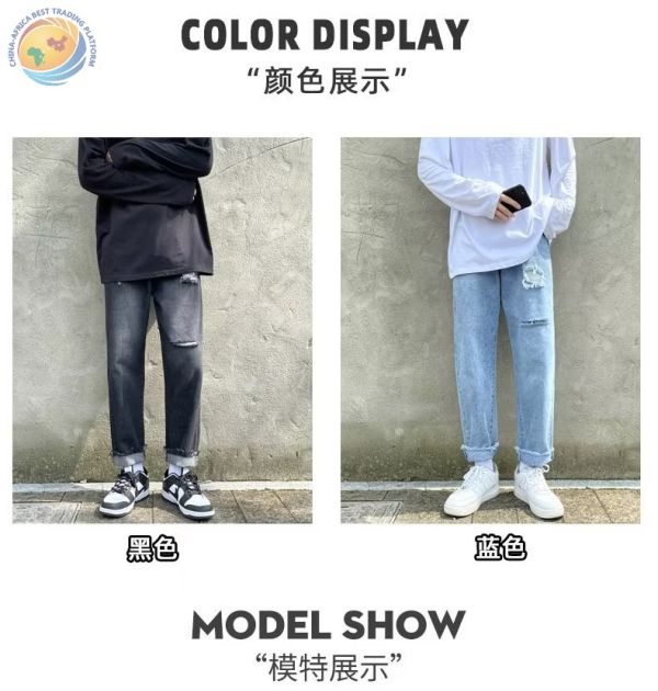 2023春夏季宽松直筒洞洞阔腿裤学生休闲长裤子薄款破洞牛仔裤男士