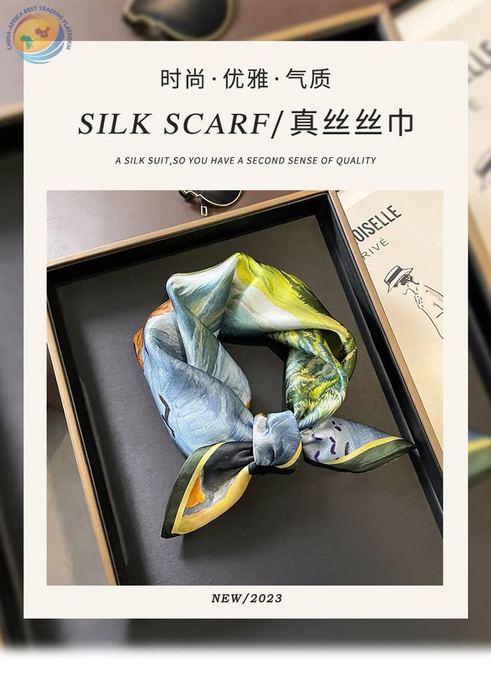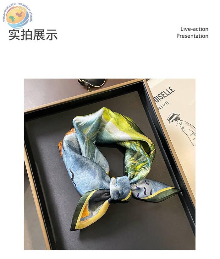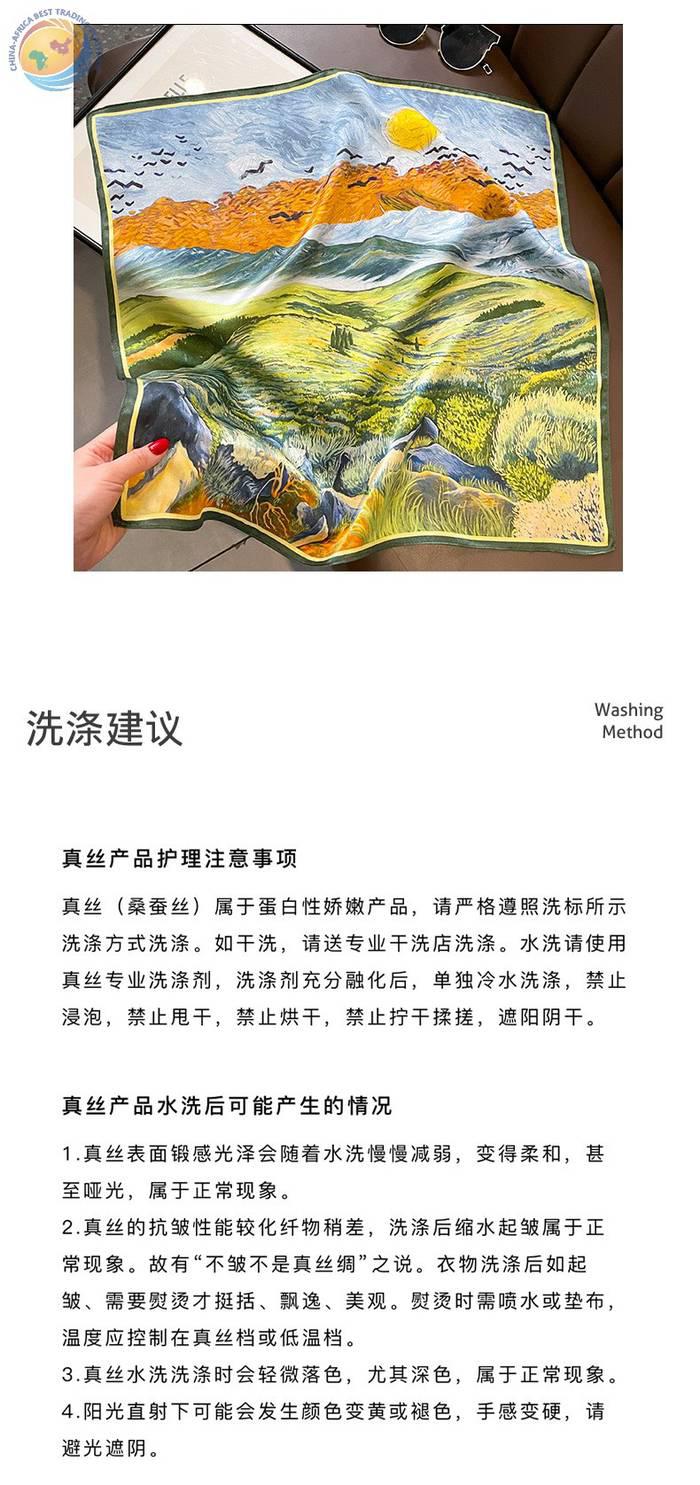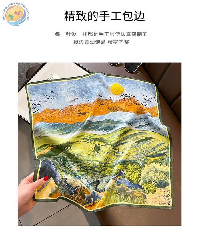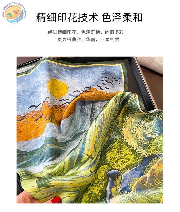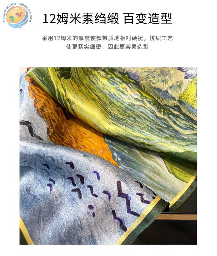 桑蚕丝油画草地梵高春秋护颈椎保暖丝巾