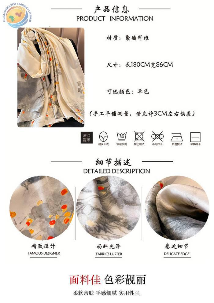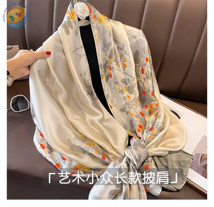 Style shawl scarf new printed imitation silk decoration with sun protection