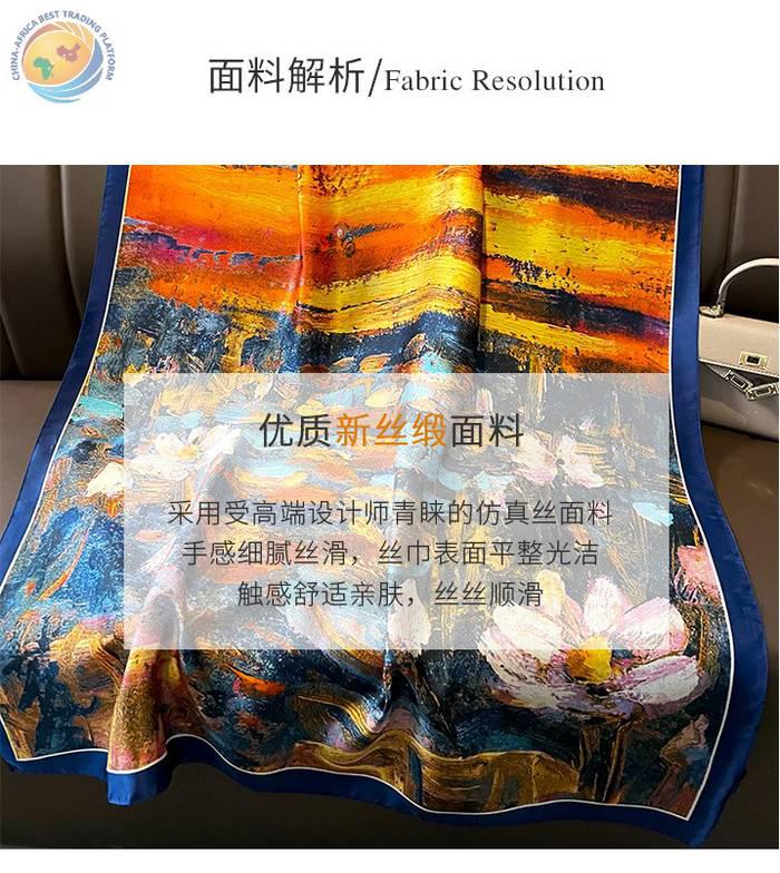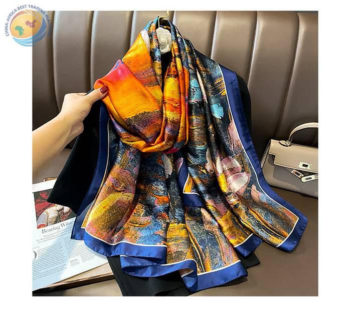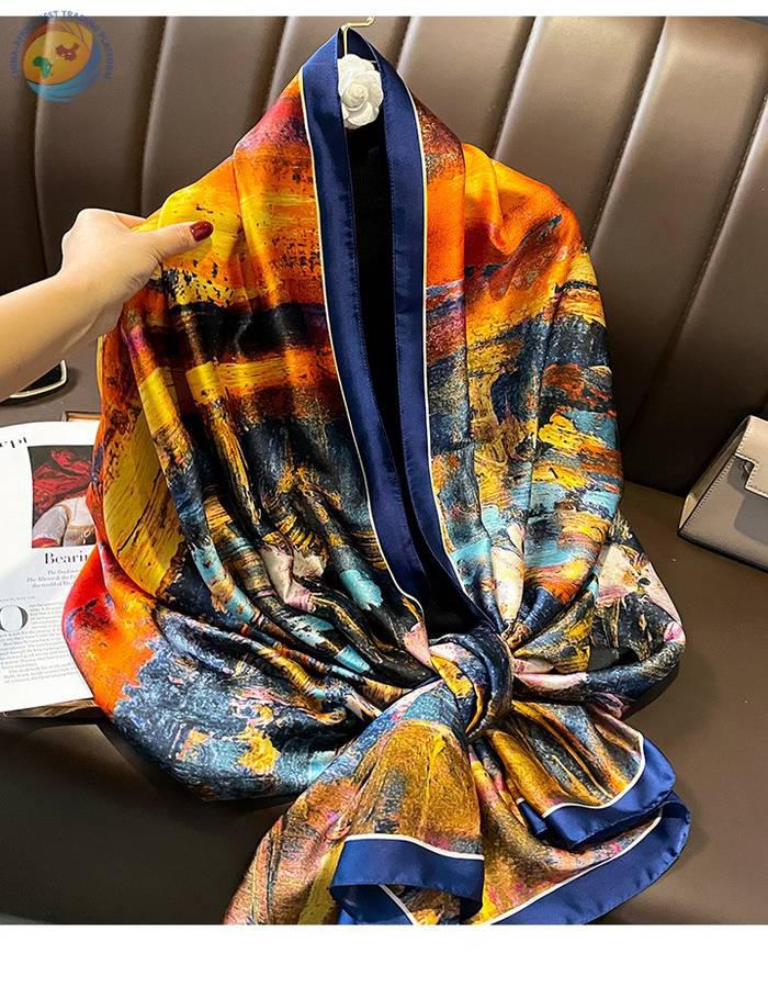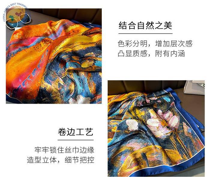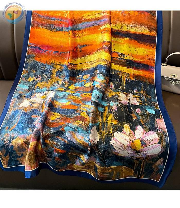 Sunset lotus oil painting imitation silk super long scarf scarf shawl