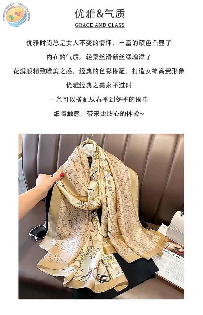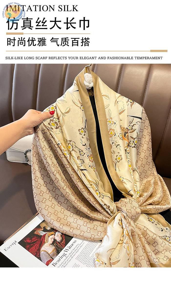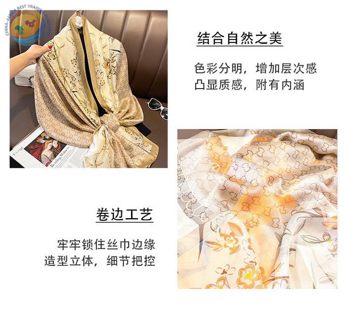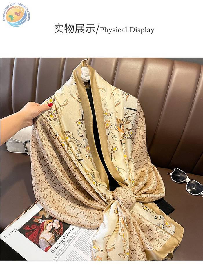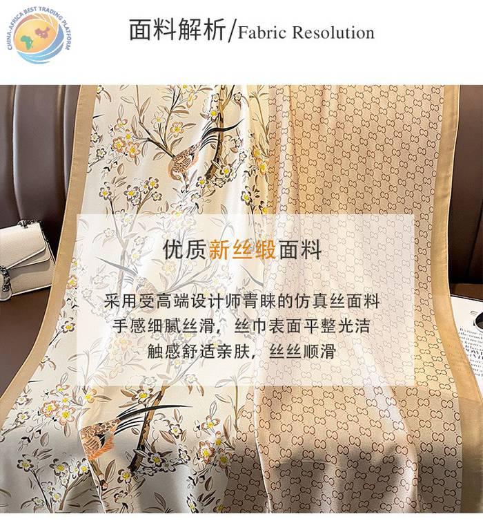 Summer flower printed silk scarf for women Bird twig spliced shawl