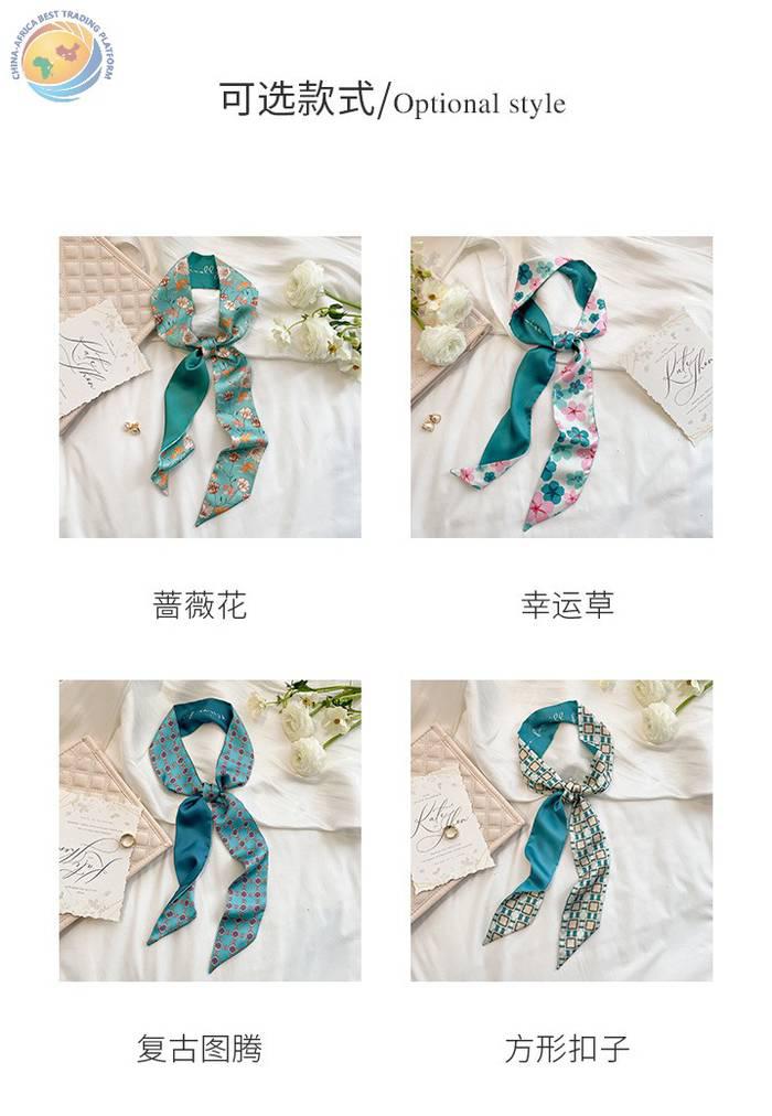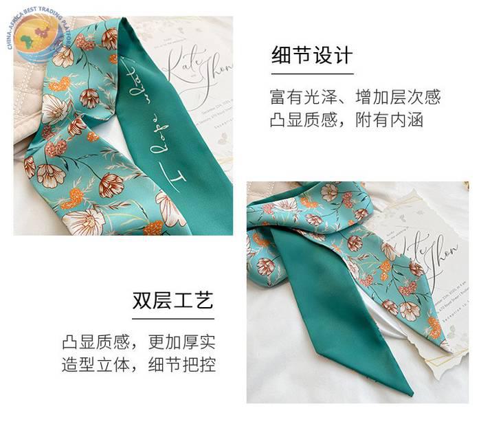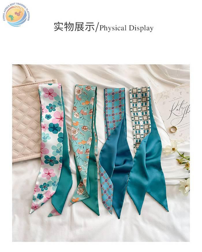 Blue tie French headband spring/summer thin retro floral silk scarf