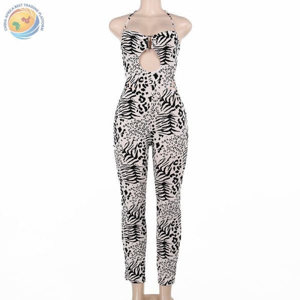 街头纯色提花破洞镂空设计抹胸露肩连体裤速卖通