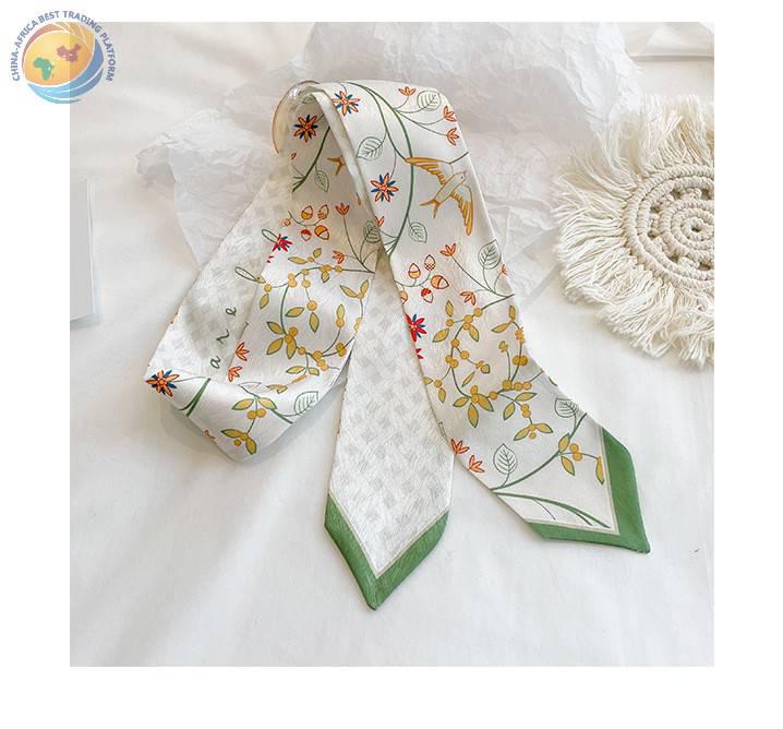 Spring and summer new oil painting wind thin narrow long scarf female small ribbon